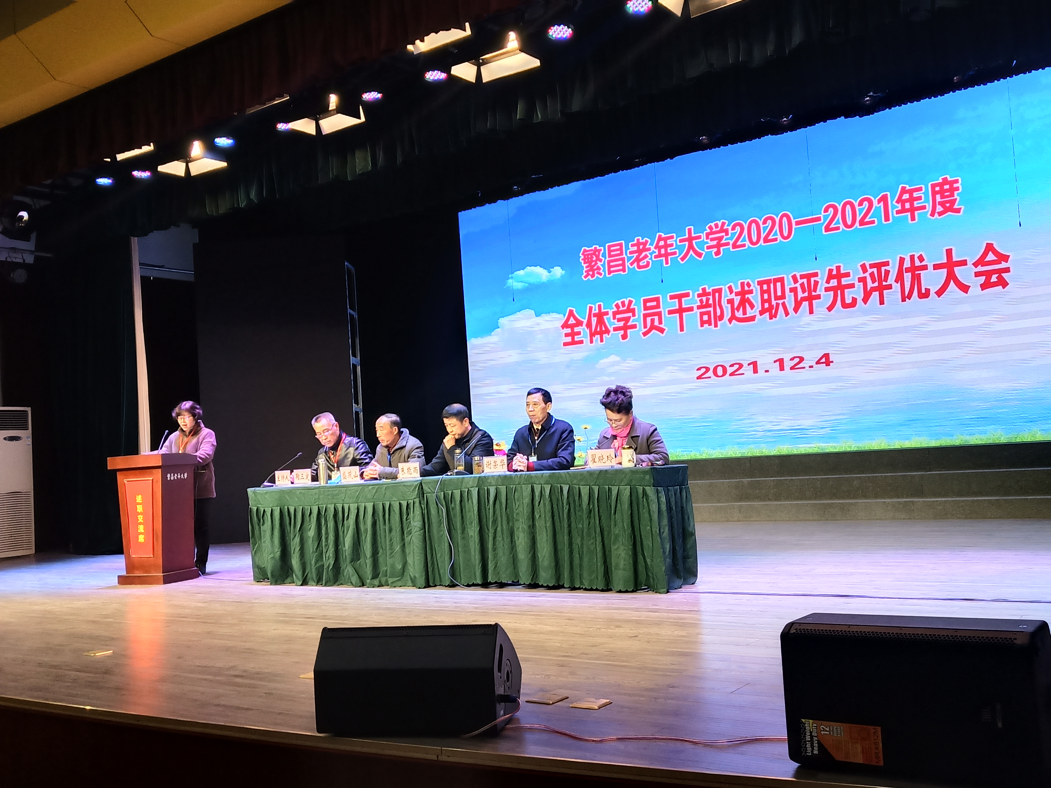 2021年12月4日,繁昌老年大学2020~2021年度全体学员干部述职评先评优大会在校四楼多功能大厅拉开了帷幕。上午会议由学委会主席鞠三定主持,下午会议由校助翟晓玲主持。