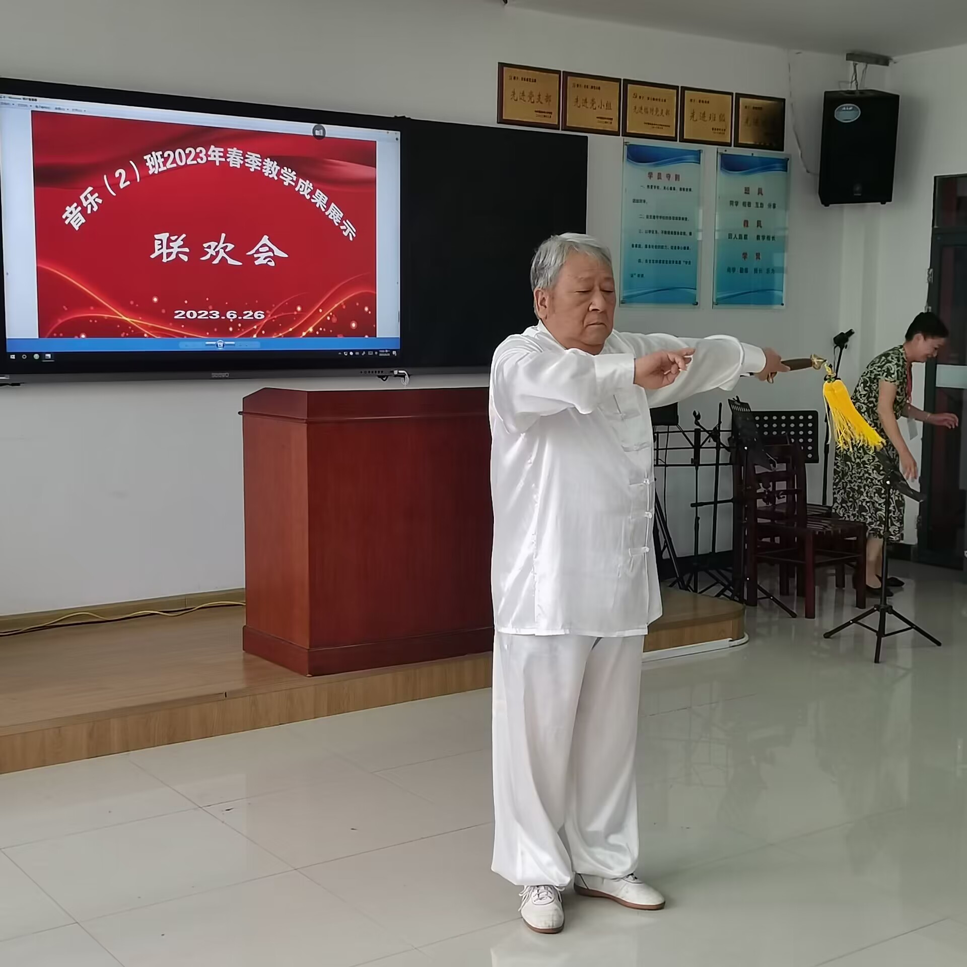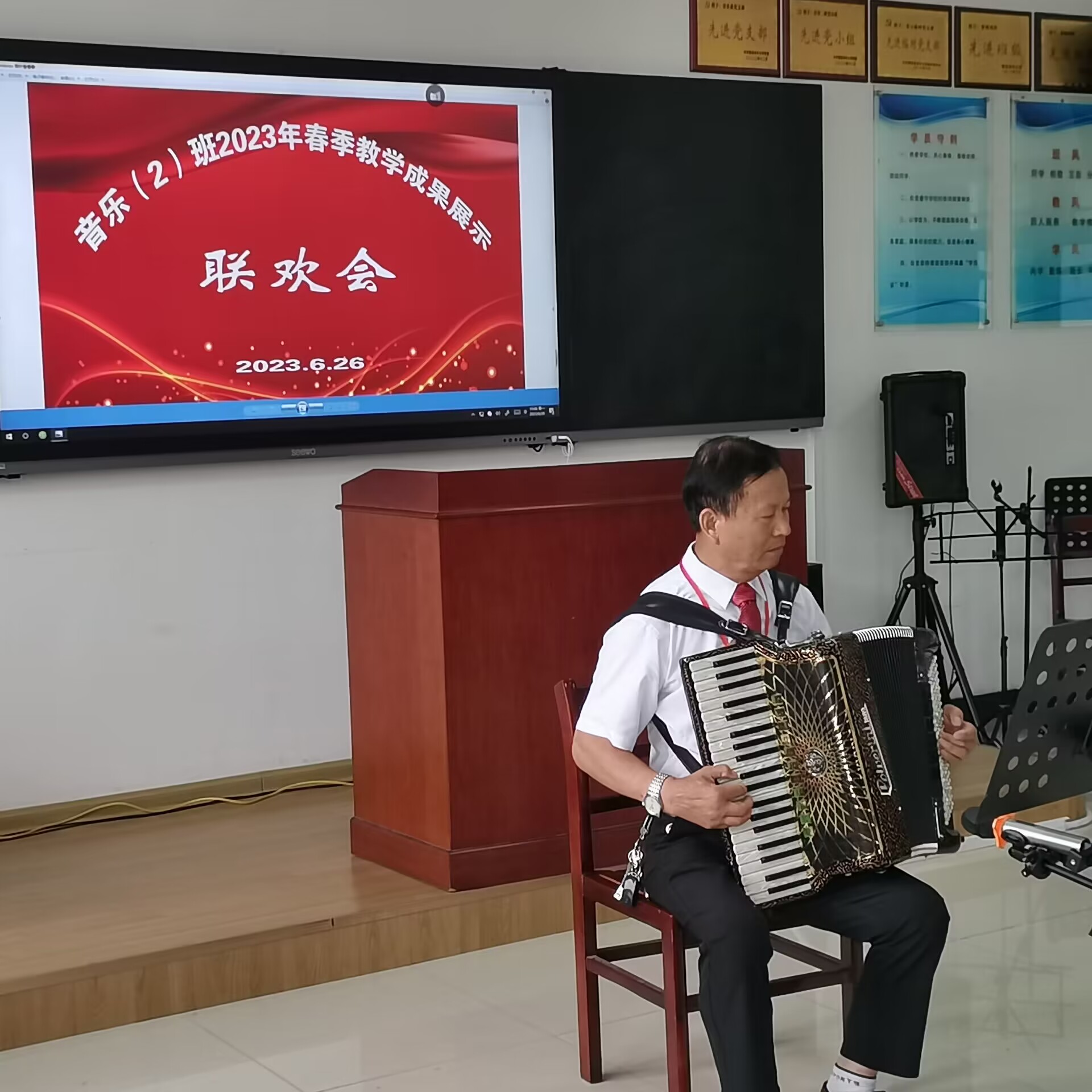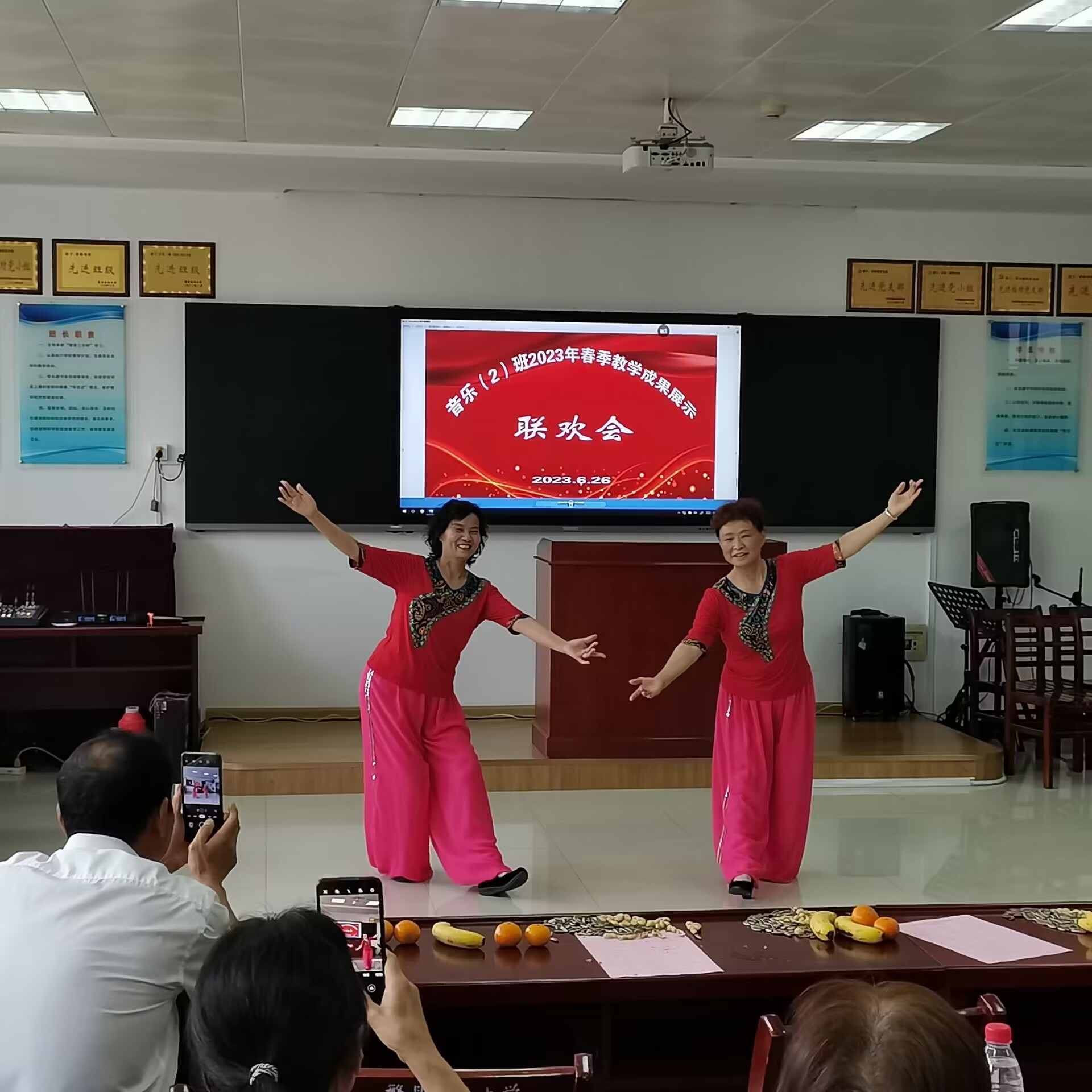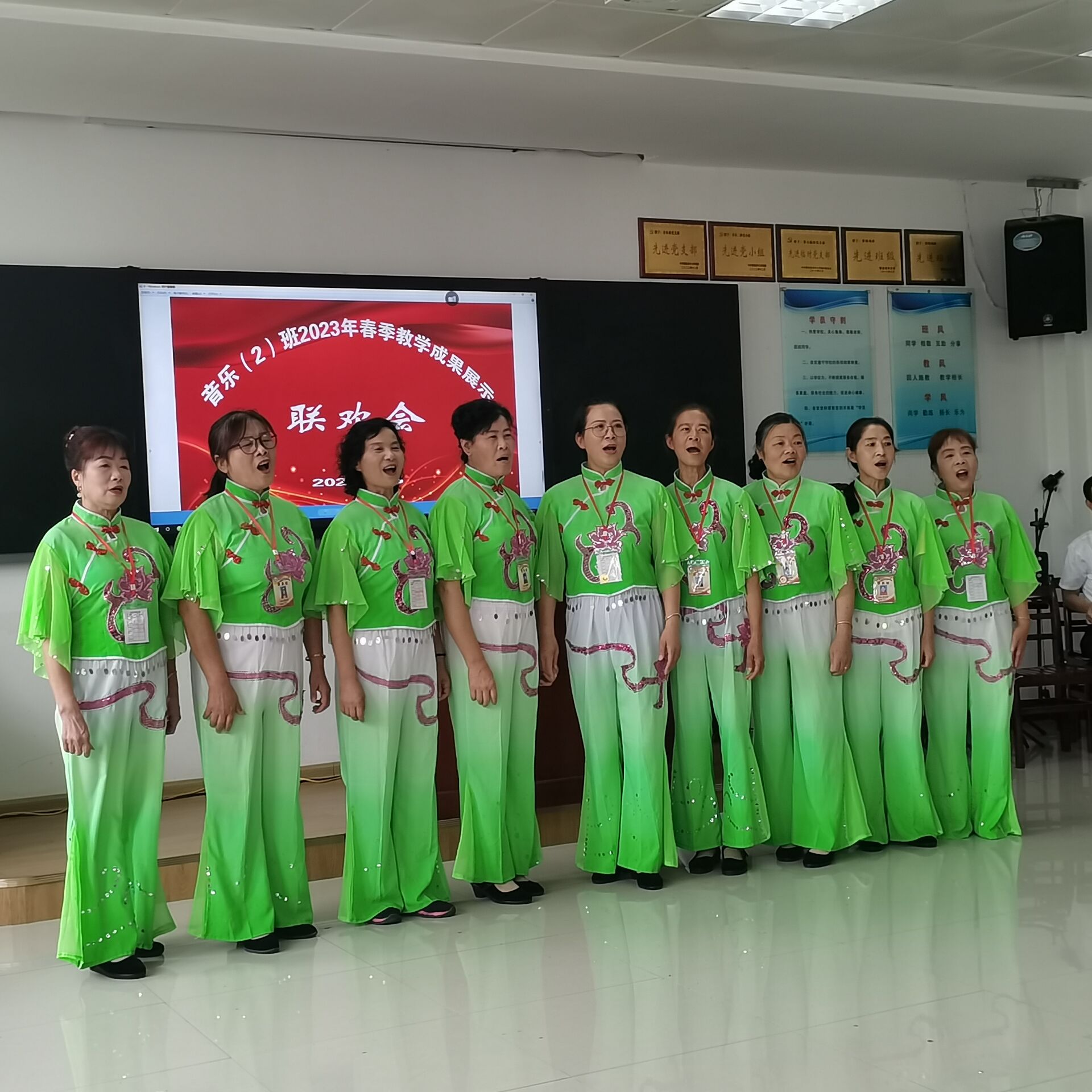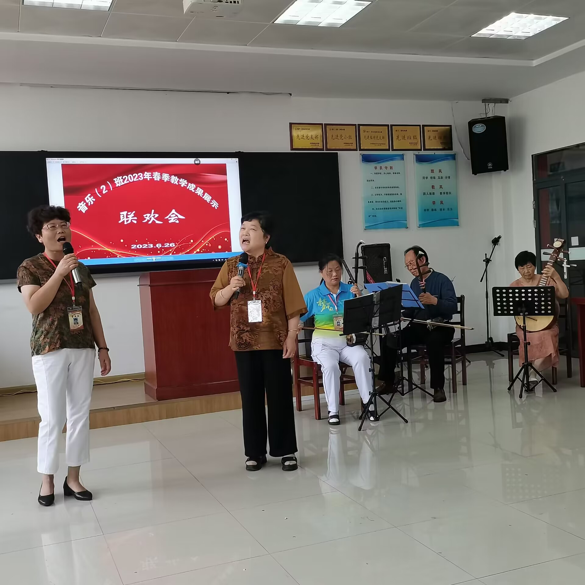 经过了一学期的老师辛勤细致的教学,同学们认真地学习,使大家提升了歌唱水平,丰富了同学和老师的情感。老有所学实现老有所乐,获得满满的幸福感。双脚踏上幸福路,越走路越宽,越唱心越甜。最后活动在一首欢快的民歌声中结束。