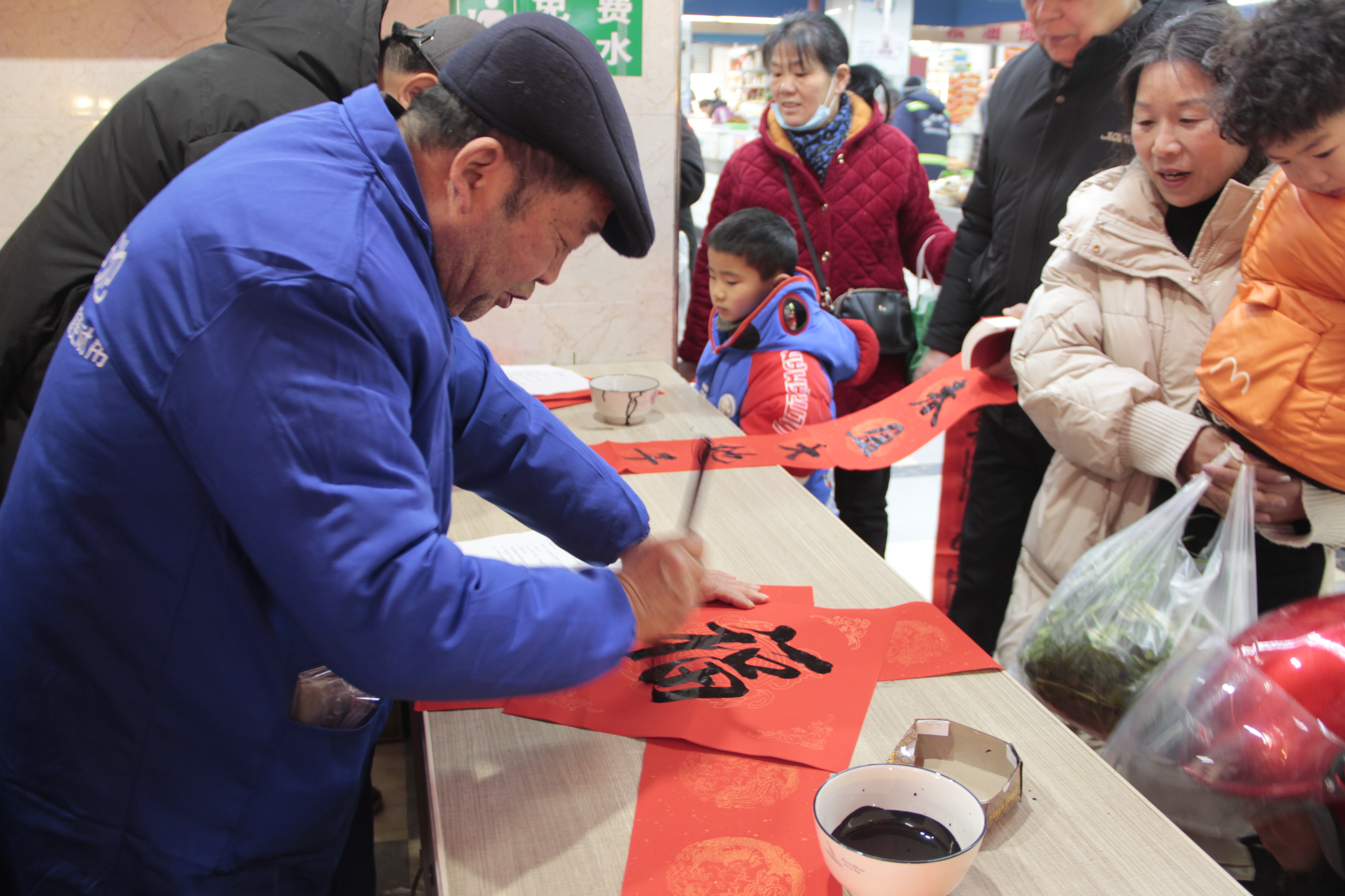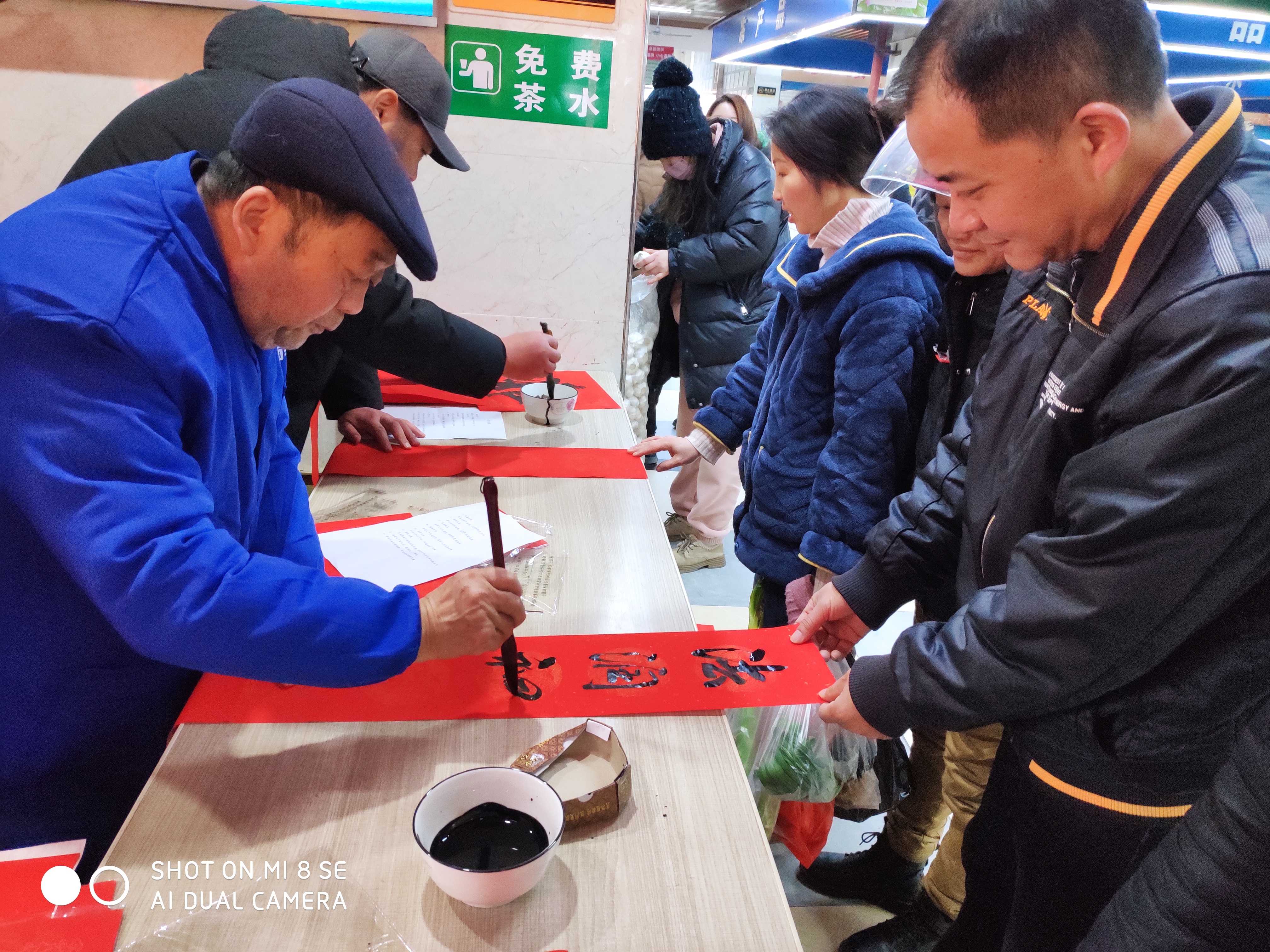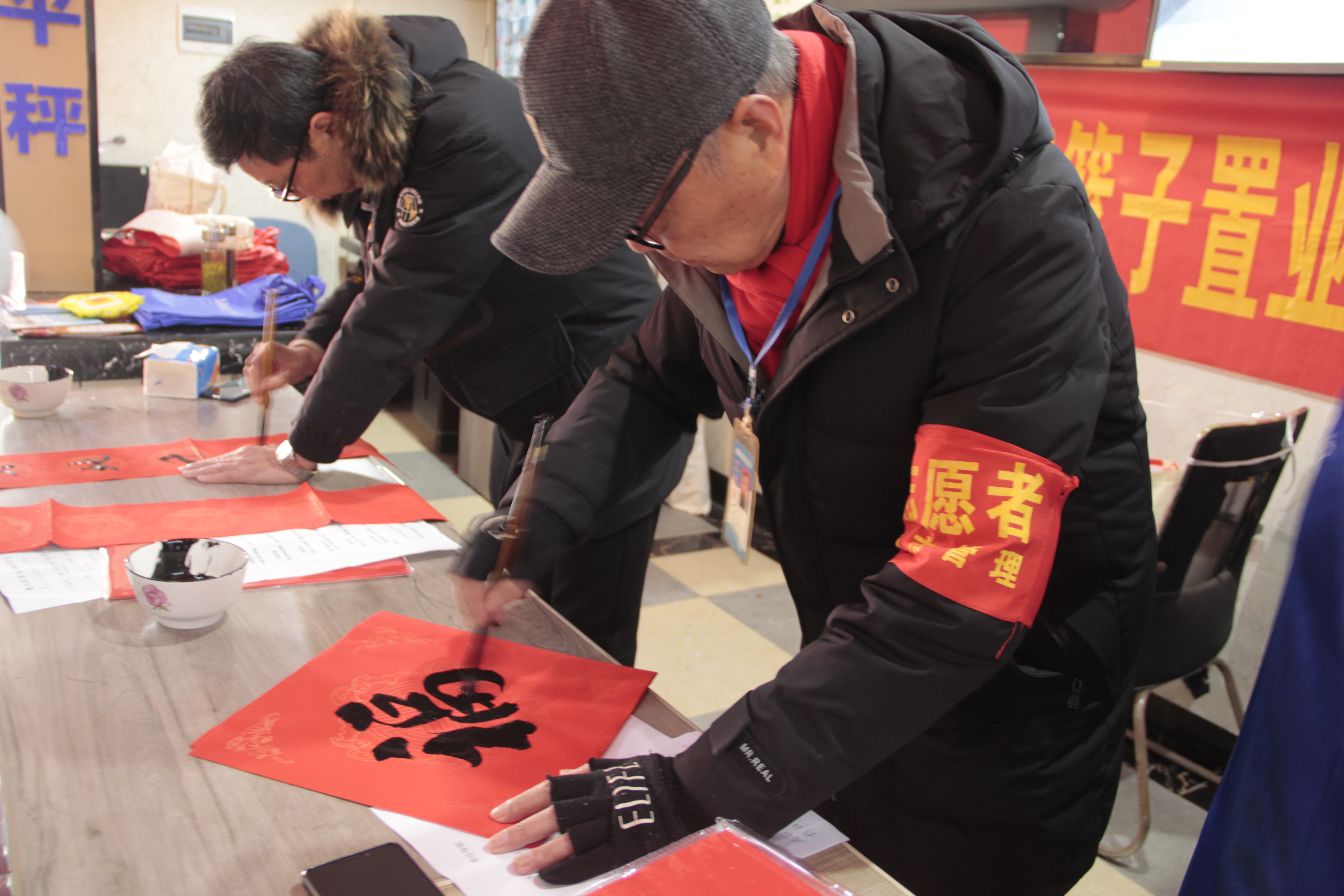 看着领取春联的市民脸上布满笑容,高兴而来满意而归,书写春联的学员们搓着冻僵的手,心里却是暖暖的。