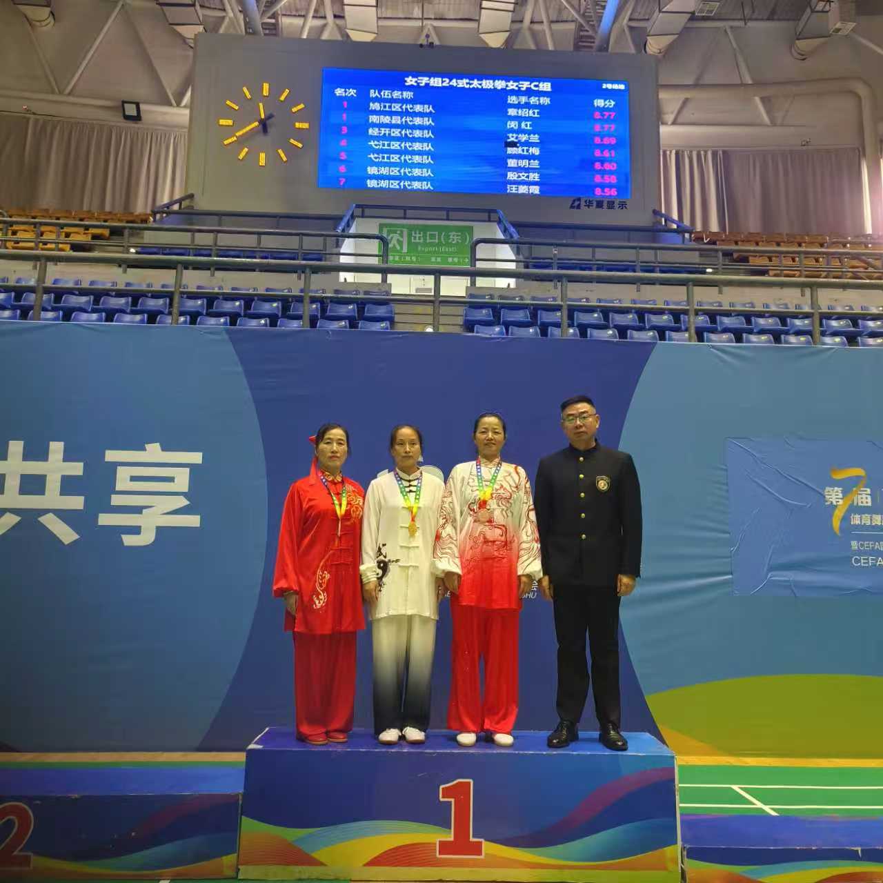 其中,女子组陈式太极拳项目尚小妹技压群芳,勇夺桂冠,吴亚琼、高昌秀、谢春桃分获第四、第六和第七名;男子C组陈式太极拳阎玉财发挥稳定,一举夺魁;器械项目女子陈式49剑高昌秀、吴亚琼、谢春桃包揽第二、第三和第五名;男子C组陈式49剑项目阎玉财再下一城,获得第三名。尚小妹还在女子C组春秋大刀项目中与队友默契配合,斩获了对练项目第一名。由吴亚琼等队员组成的繁昌区代表队勇夺集体第一名!