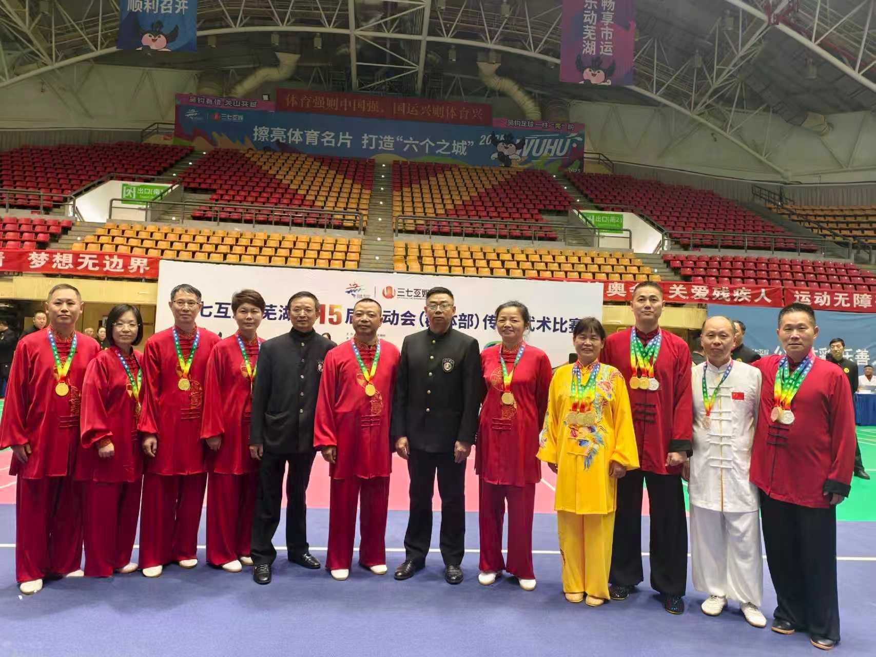 金秋送爽,捷报频传。在10月27日至28日于芜湖市奥体中心举办的芜湖市第十五届运动会(群体部)传统武术比赛中,繁昌区代表队17名队员共获得30枚奖牌(17金、7银、6铜)。其中繁昌老年大学太极拳提高班学员为骨干的5名队员,获得了7金、2银、3铜的辉煌战绩。