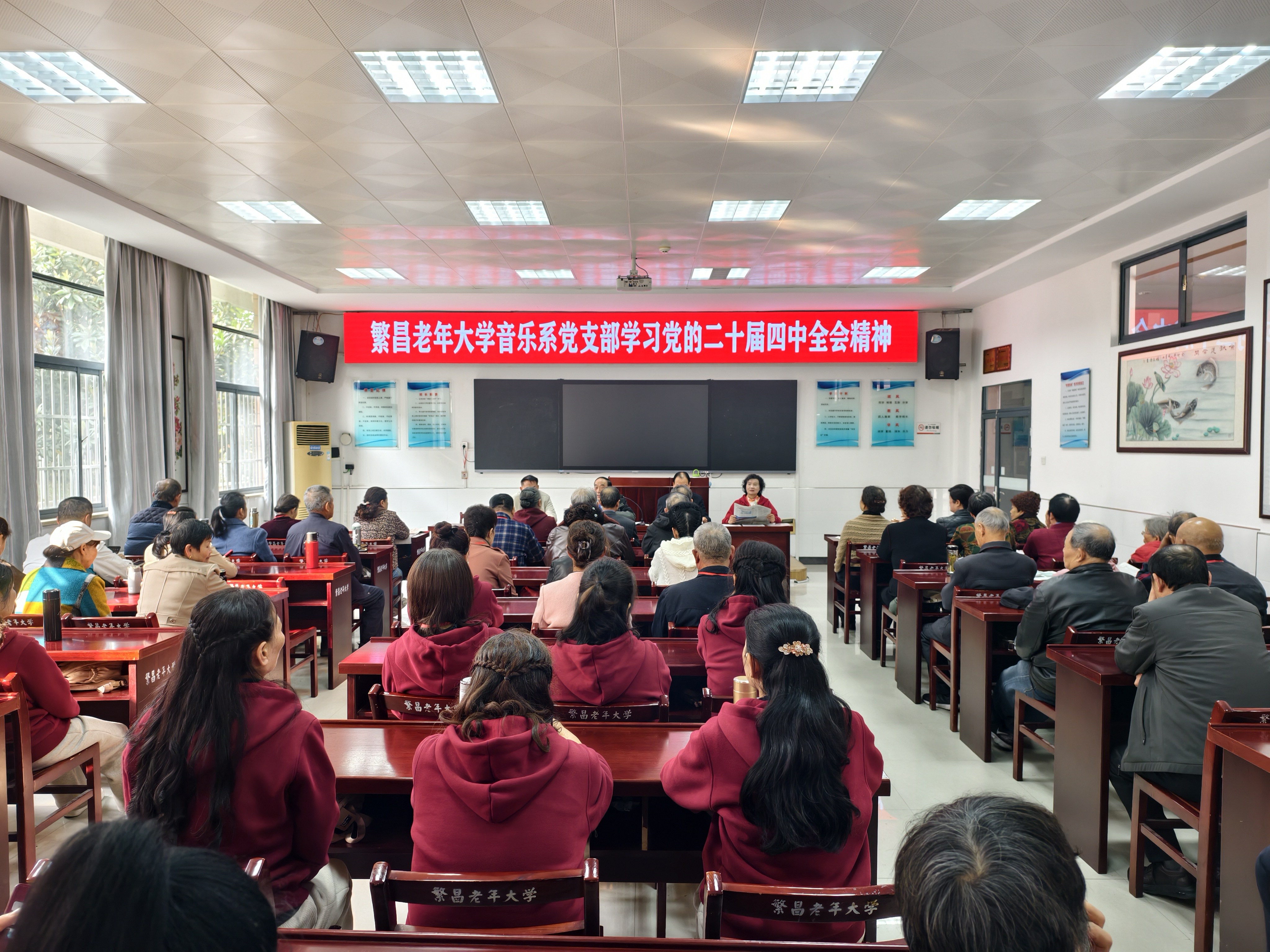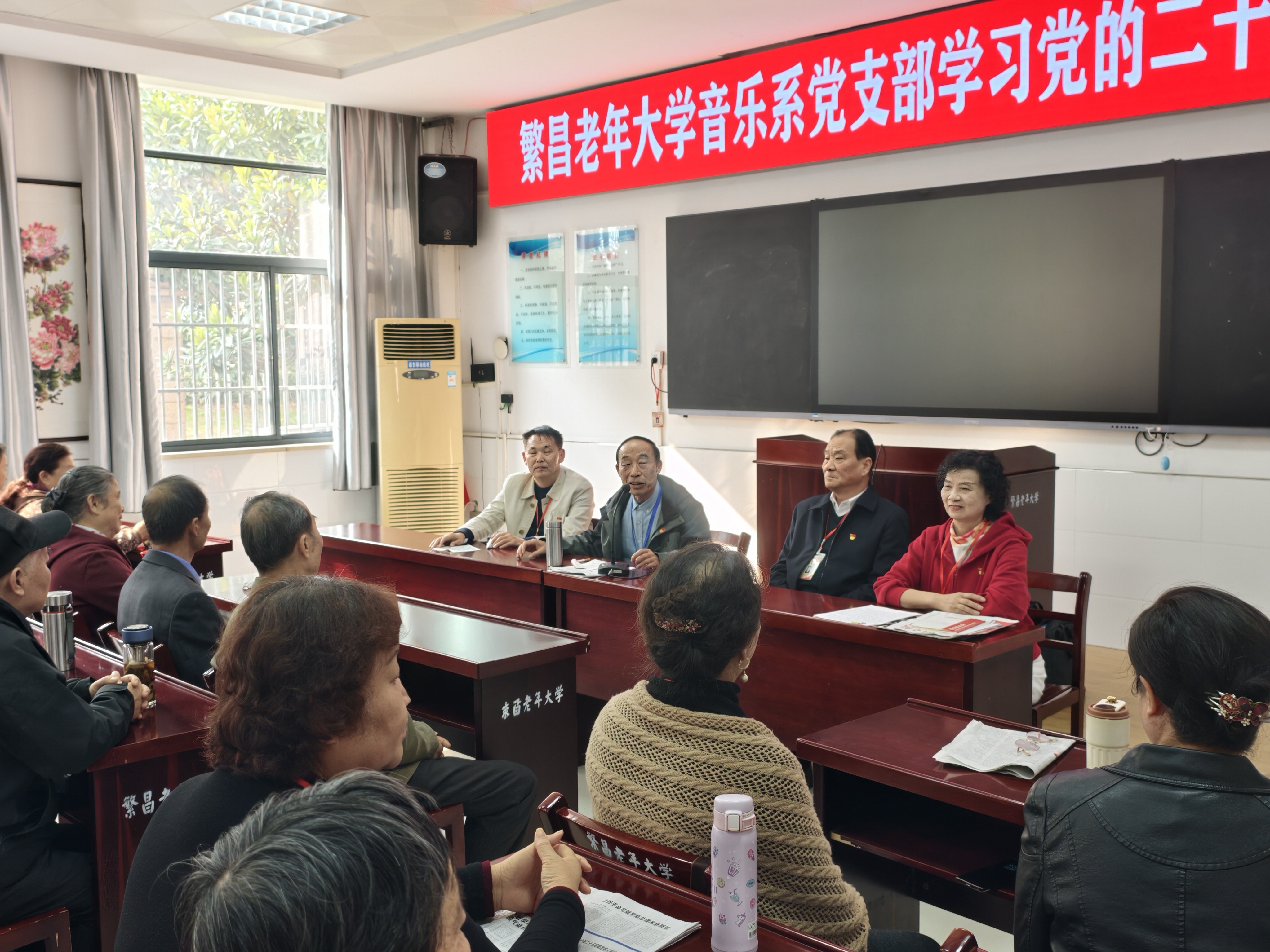 11月14日,繁昌老年大学音乐系党支部按照校党委部署,组织声乐班、音乐一班、音乐二班三个党小组的党员和学员,集中学习党的二十届四中全会精神。学习活动由音乐系党支部书记李长英主持。