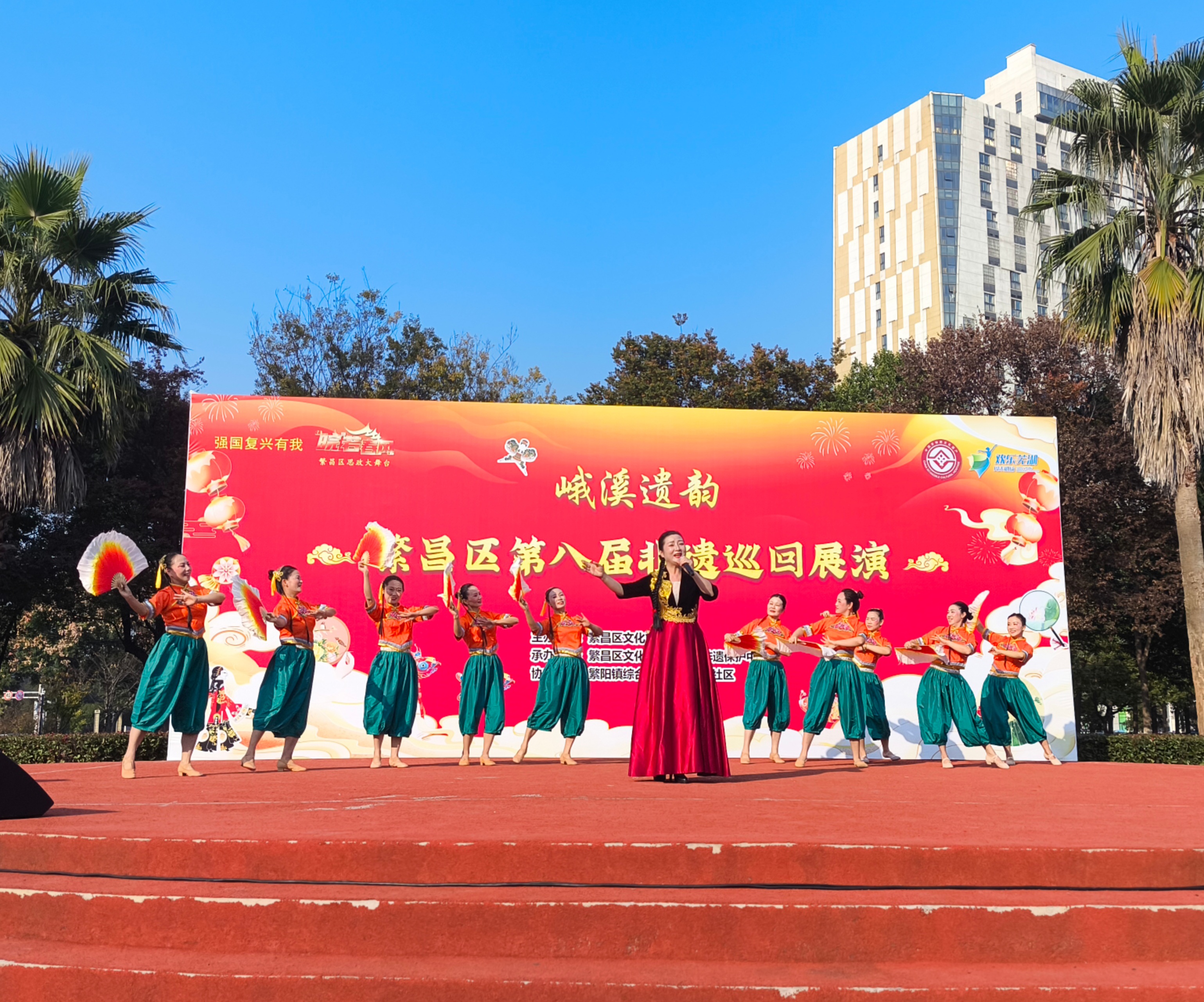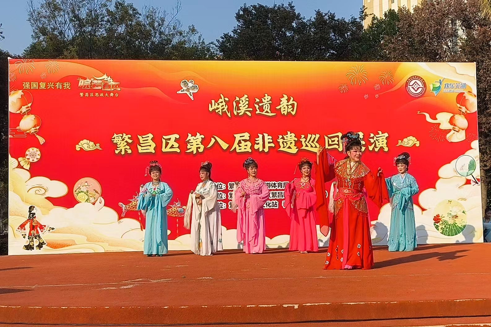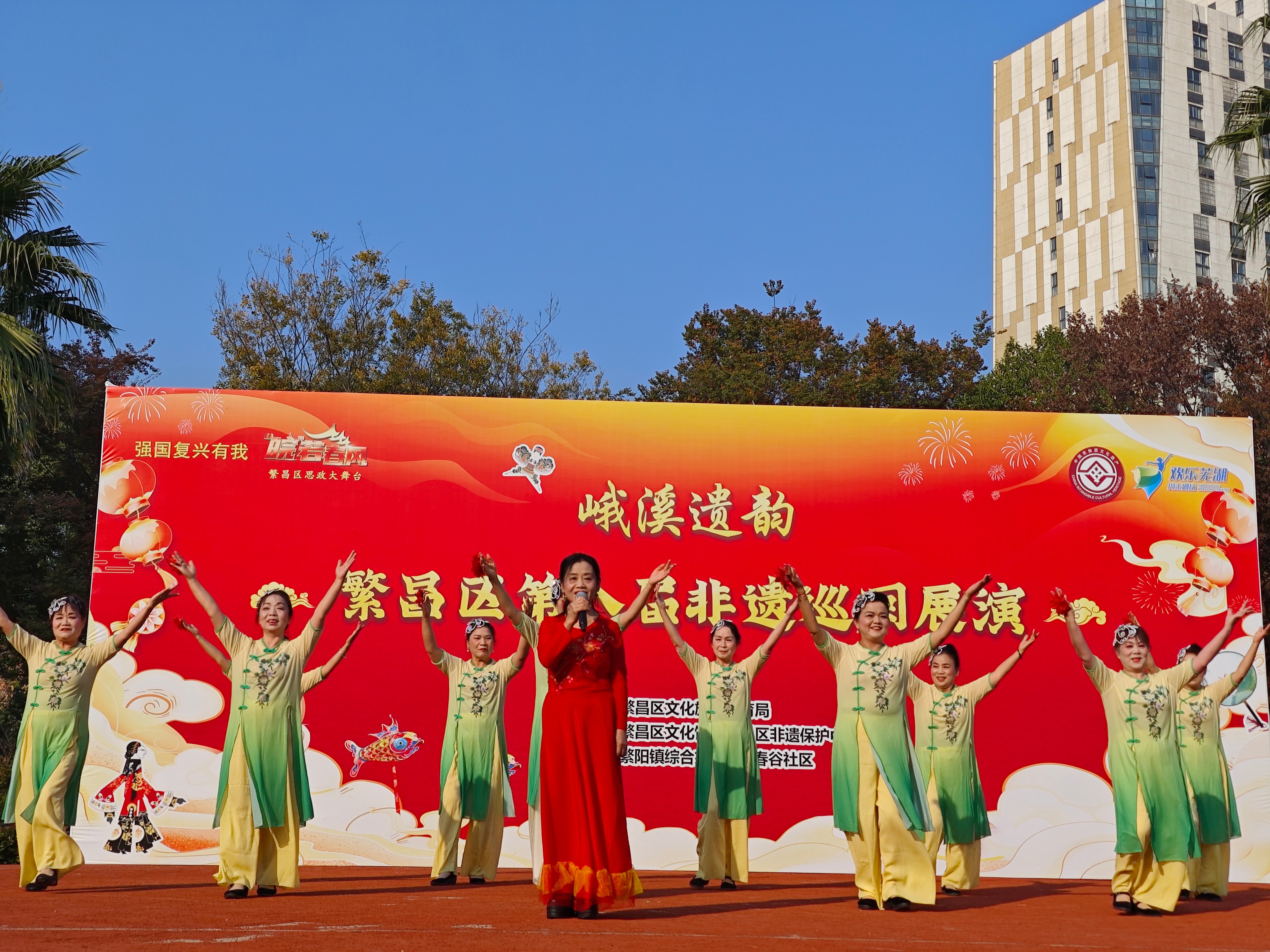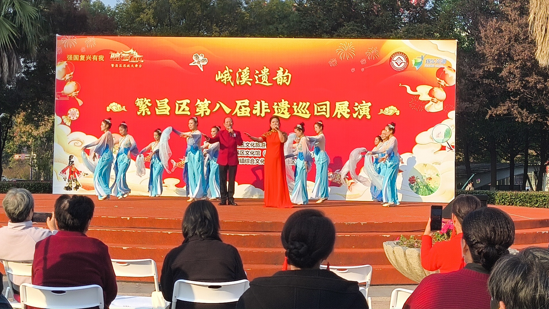 11月15日,“强国复兴有我·欢乐芜湖繁昌”非遗巡回大舞台系列活动之“峨溪遗韵”繁昌区第八届非遗巡回展演,在繁昌峨溪公园广场温情启幕。本次活动由繁昌区文化旅游体育局主办,繁昌区文化馆(繁昌区非遗保护中心)承办。 繁昌老年大学既是积淀文化厚度的精神家园,更是传承非遗文脉的活力摇篮。受区文化馆诚挚邀请,繁昌老年大学音乐系、戏剧系部分学员成为非遗文化传播使者,亮相繁昌区非遗巡回展演舞台,以精彩文艺节目为这场文化盛宴助兴添彩。表演的节目有:繁昌民歌《山崖花儿香》《马仁奇峰迎客来》《捎个信儿去远方》《隔山隔水心连心》,男女对唱《棒槌锤在石头上》,民间小调《划龙船》;黄梅戏《谁料皇榜中状元》《天仙配·鹊桥四赞》等。 繁昌老年大学学员们以饱满热忱与精湛演绎,让繁昌民歌、黄梅戏等非遗项目走出课堂、亮相舞台,在“老有所学”中实现“老有所为”,为繁昌区非遗传承贡献银发力量。