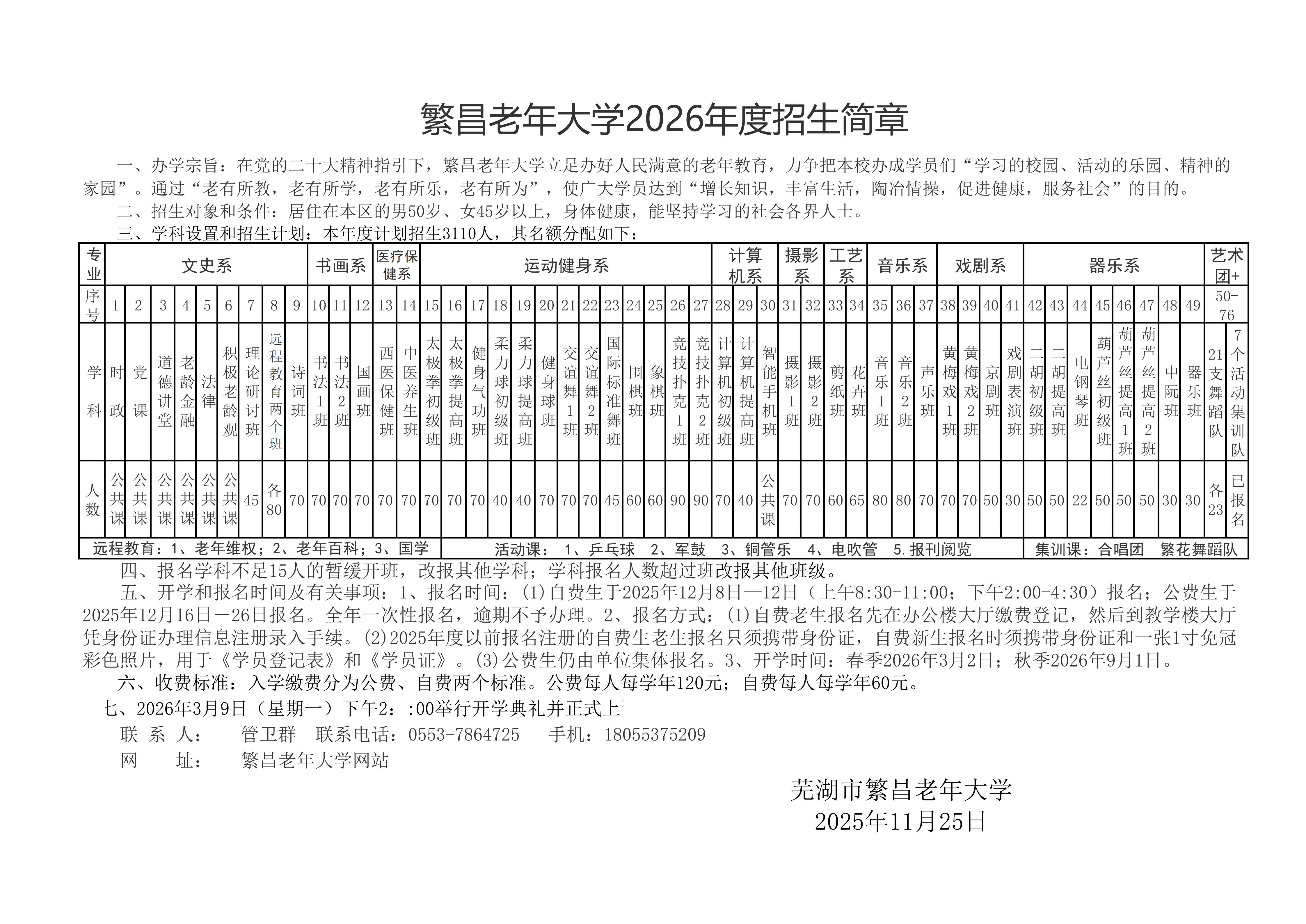 编辑日期:2025-11-25 发稿人:管理员 来源:繁昌老年大学 阅读: 【 字体: