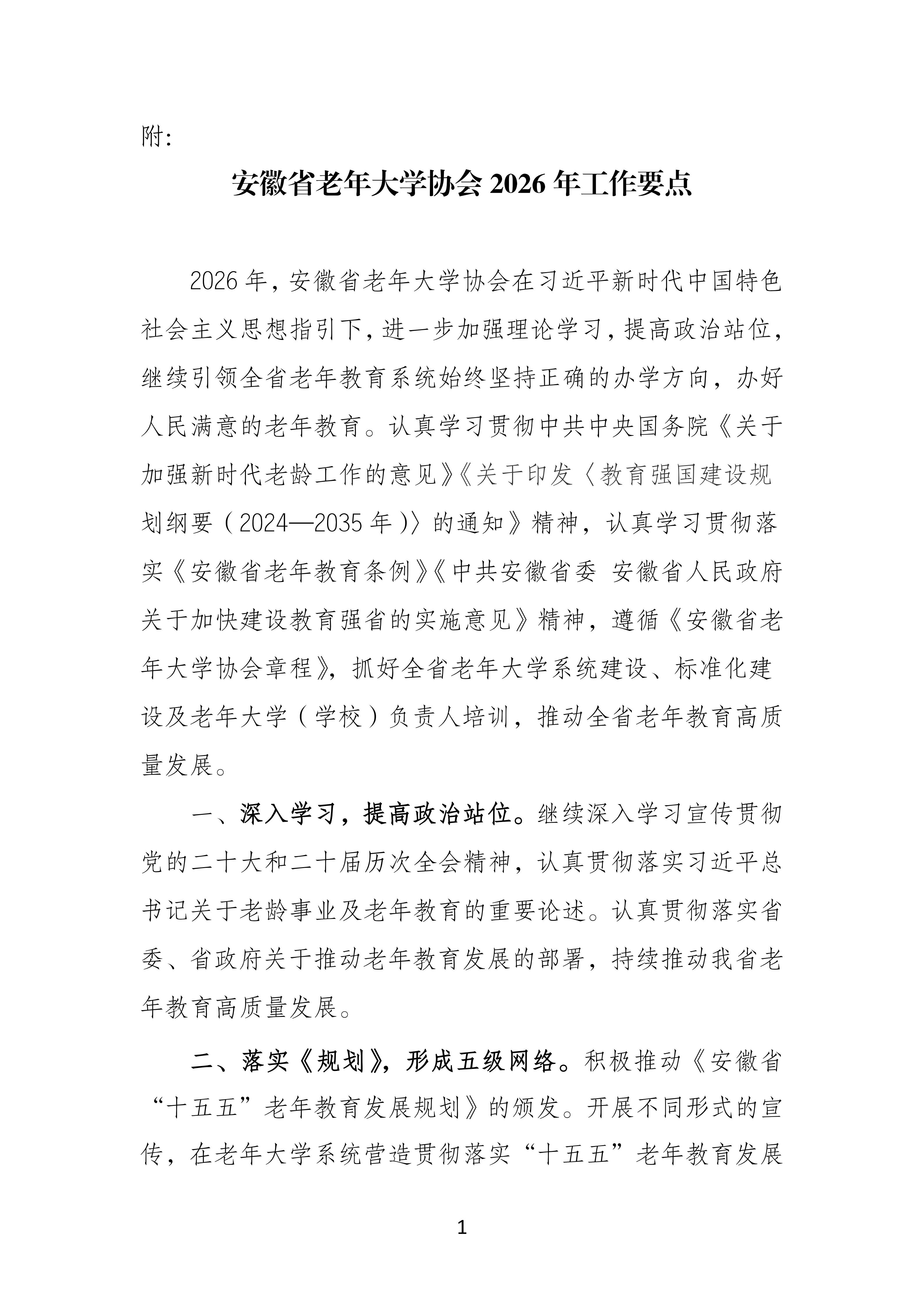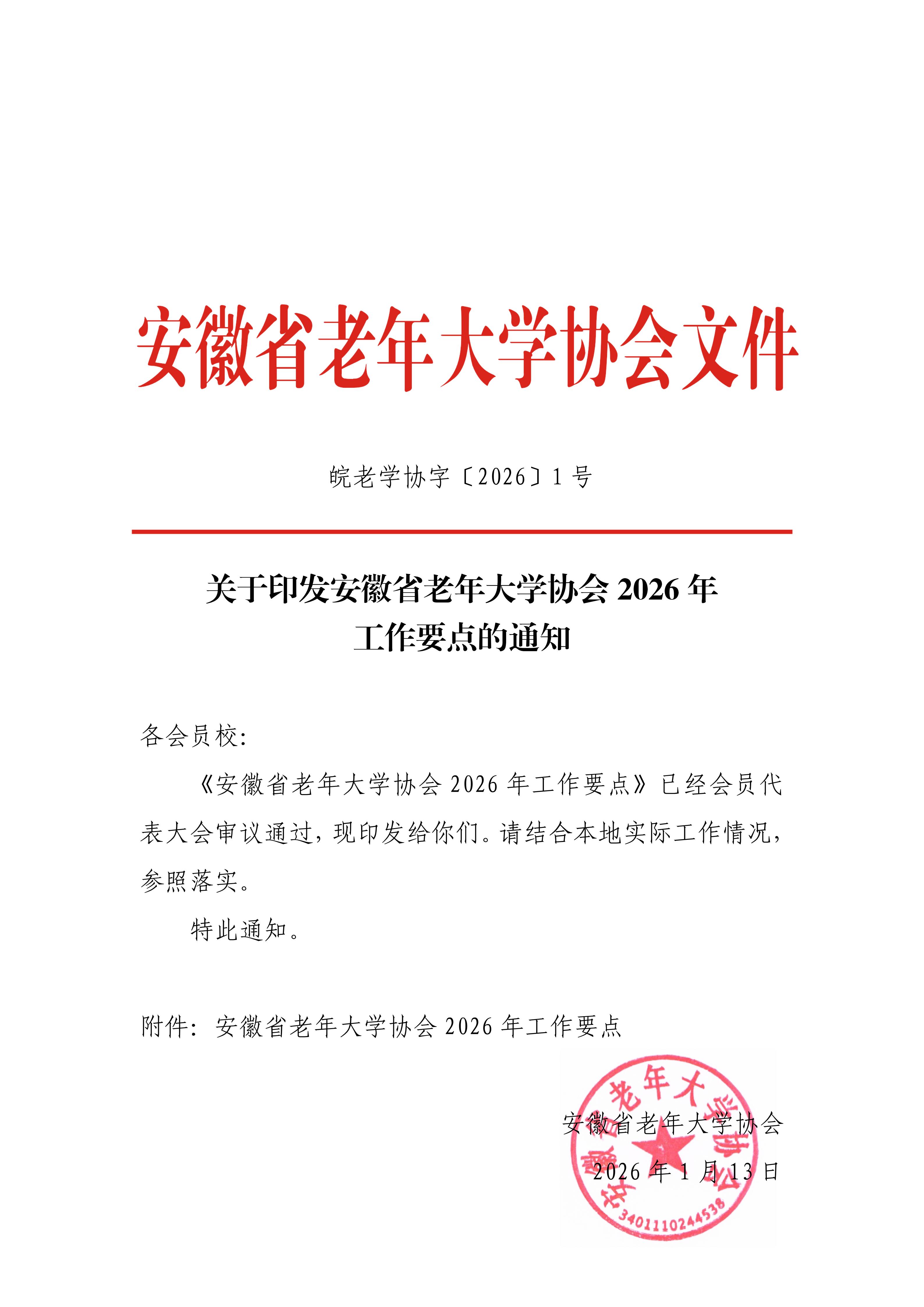 关于印发安徽省老年大学协会2026年工作要点的通知