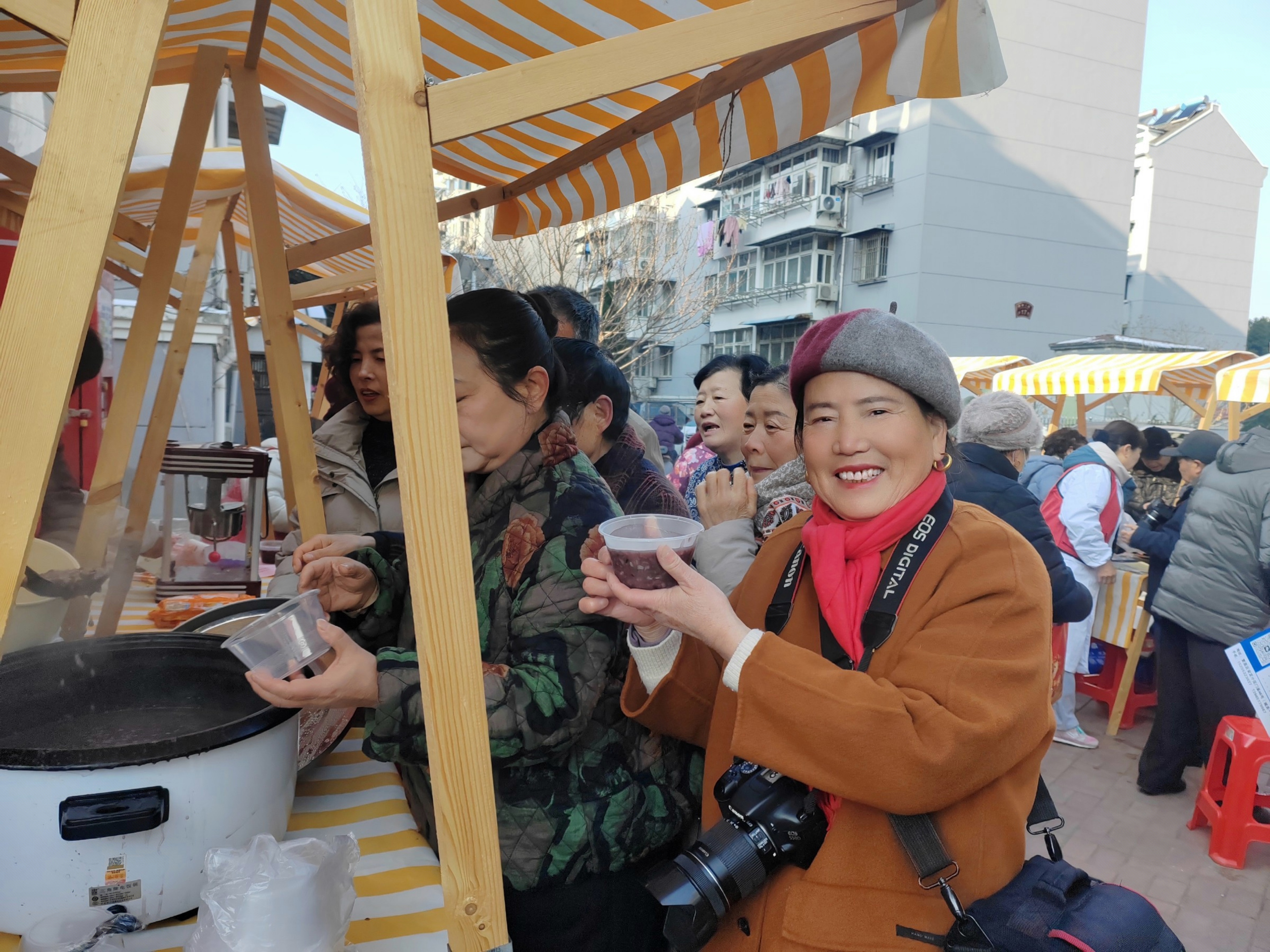 他们定格下居民相聚的美好画面,记录着络绎不绝前来参与活动的居民们的幸福笑颜,用光影为笔,绘就邻里温情,传递腊八节日的融融暖意与社区的暖心关怀。