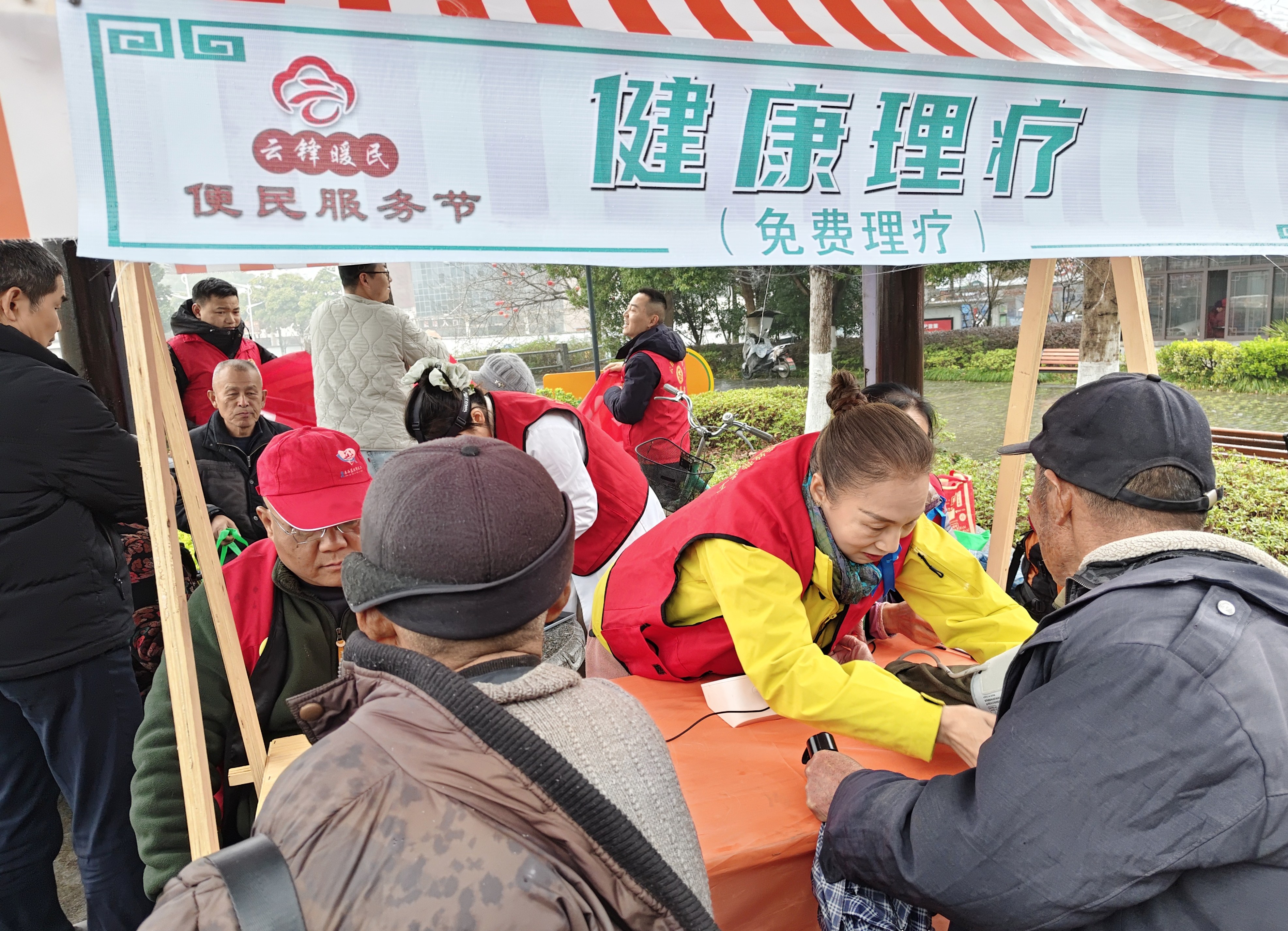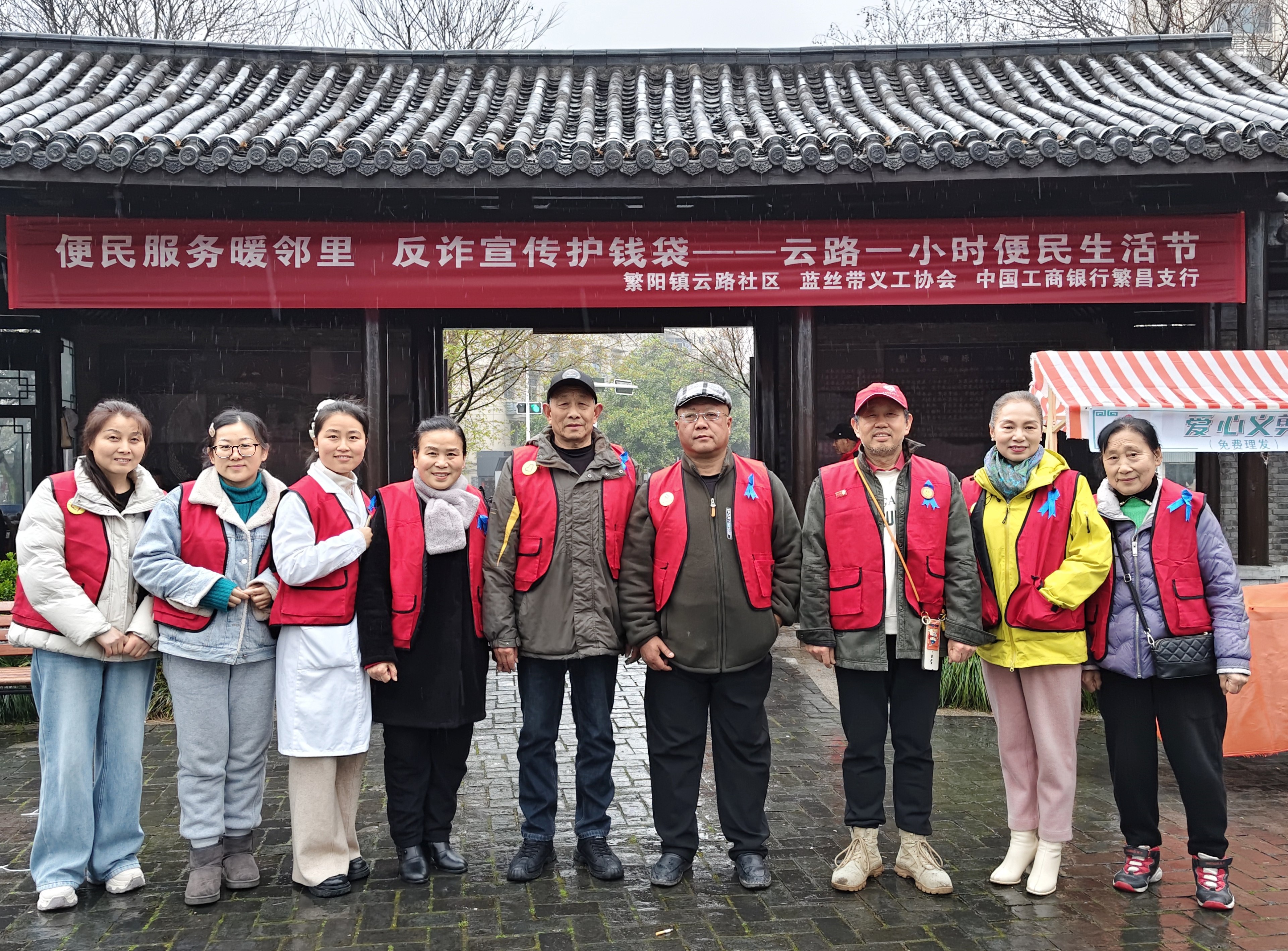 活动当天恰逢降雨,志愿者们不惧风雨,坚守在活动地点持续开展服务。现场设置免费理发、耳部检查、血压测量等便民项目,同步开展反诈宣传,切实守护居民“钱袋子”。现场秩序井然、氛围温馨。
