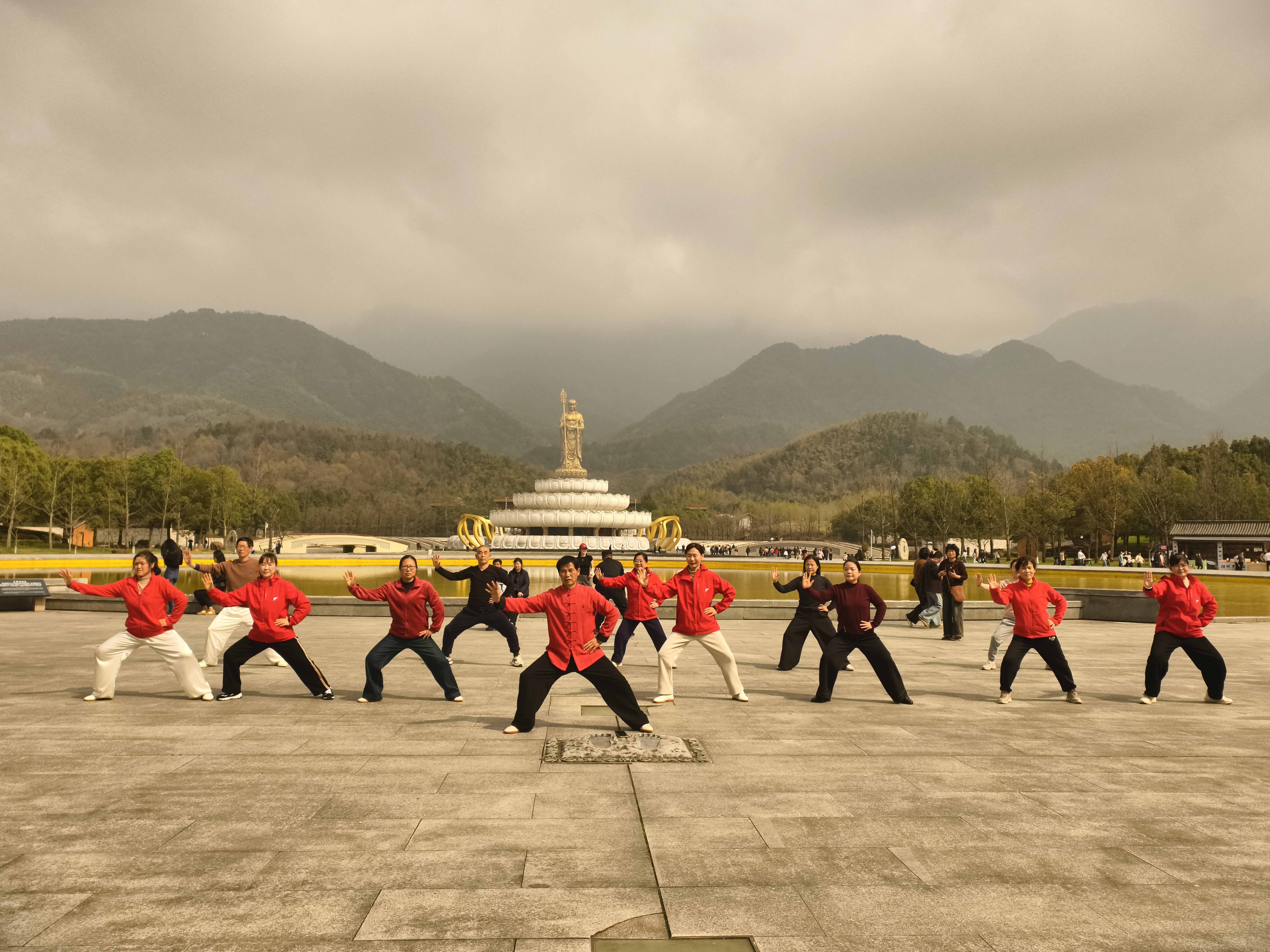 3 月 21 日,繁昌老年大学健身气功班学员在指导教师带领下,应邀前往青阳县,参加由青阳县武术联谊会与繁昌区气功协会联合举办的武术气功联谊交流活动,以精彩展演纪念国际太极拳日。
